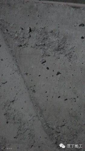 (5)侧模在浇筑混凝土前未涂隔离剂或涂得不匀,脱模后混凝土粘结在侧模上,清理时锤击振动,使表面凹凸不平。