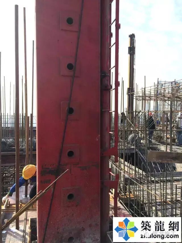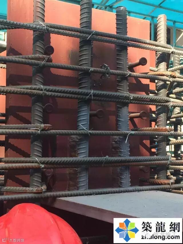 钢板墙的吊装,垂直度控制为施工控制要点。由于钢板墙的阻断效果,使墙体模板对拉丝杆的精确定位及墙体箍筋施工都产生了一定困难。