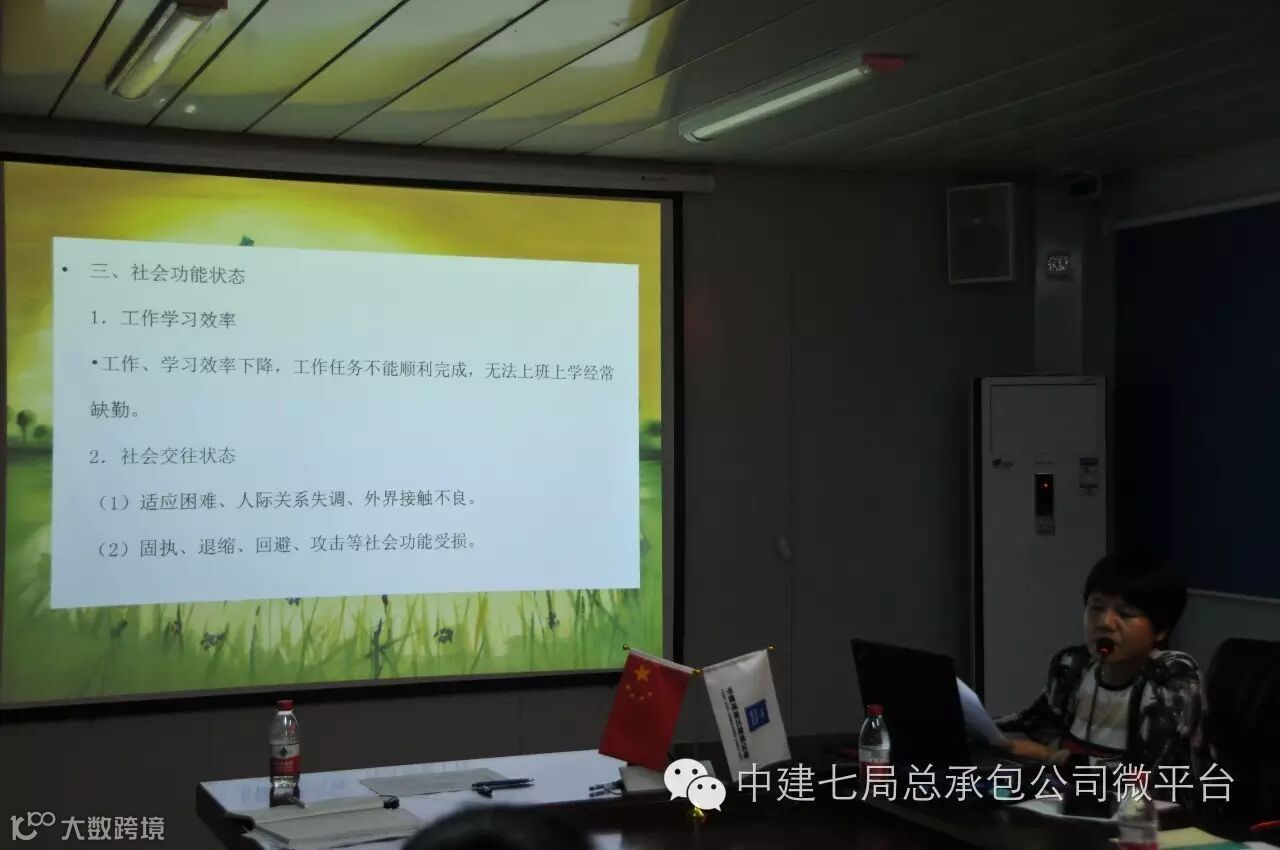 近日,中建七局首次爱心疏导室建设运行情况督导会在总承包公司白沙项目部召开。局工会副主席马四海,女工委主任、女工部部长景超,办公室主任赵军芳,河南省经贸职业学院心理咨询专家杜月菊教授,总承包公司助理总经理、白沙项目部总指挥长宋庆飞,公司工会工作部部长李嘉佳、白沙项目部党支部书记吴文彦及总承包公司、建装公司、安装公司的项目爱心疏导室负责人和白沙项目职工40余人参加了会议,会议由景超主持。