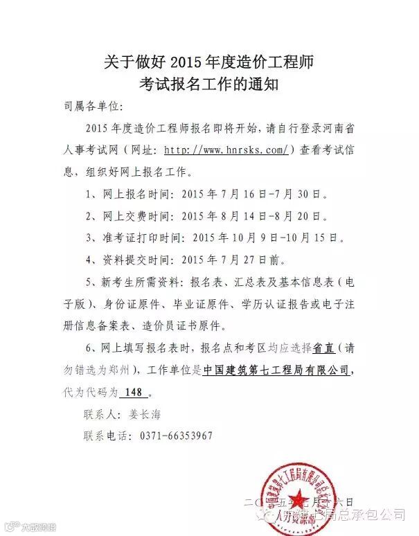 2015年度造价工程师考试开始报名啦~~~