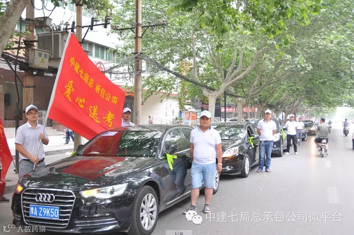 6月7日早上6点30分,在中建七局大厦门前,一排系着绿丝带的轿车整齐地停着,总承包公司纪委书记、工会主席张新认真地把每辆车的绿丝带捋了捋,脸上露出欣慰的笑容,这已经是总承包公司连续爱心送考的第五年了。