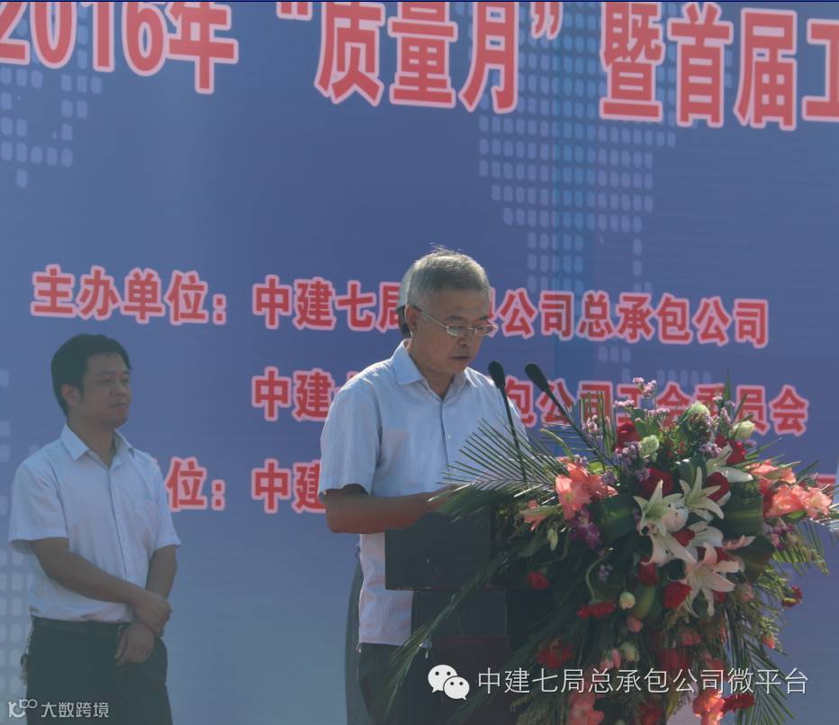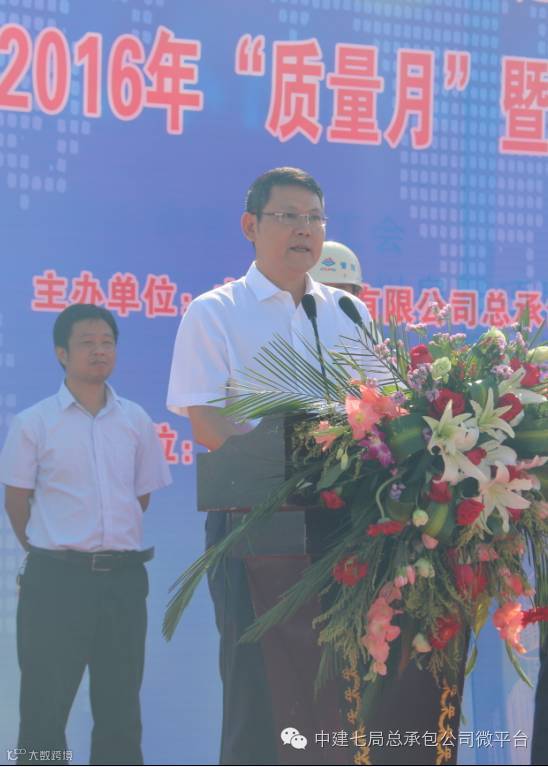 近日,总承包公司在白沙二期项目隆重举行了主题为“提升供给质量,建设质量强国”的2016年“质量月”启动仪式。公司总经理苏方毅,工会主席、总会计师王修钰,总工程师孙忠国,副总工程师兼技术部经理何海英,副总工程师曹战峰,助理总经理兼白沙二期项目指挥长宋庆飞,工会工作部部长李嘉佳,劳务部经理孙小兵以及河南片区在建工程项目经理、质量负责人、质检员共计103人参加了本次活动,活动由何海英主持。