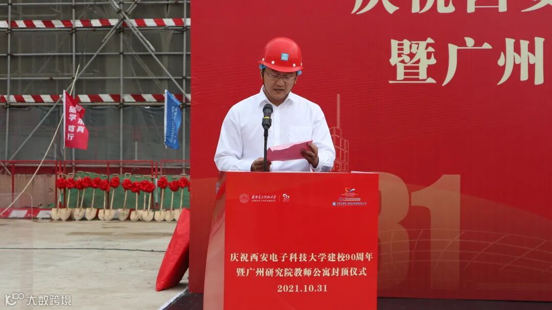 褚庆昕代表湾区校友致辞,他深情表示,广州研究院教师公寓的顺利封顶不仅代表项目建设的推进快速,也让广东全体校友在湾区有了驻足的“驿站”和休憩的“港湾”。