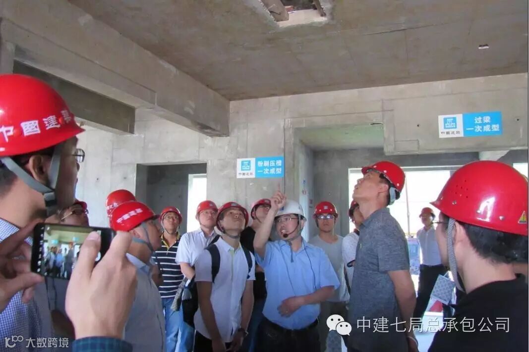 为了贯彻落实股份公司和中建七局“十三五”发展规划,强化和规范课题研究与管理,提升绿色建造技术水平,推进建筑工业化,5月24日上午,总承包公司郑州泉舜项目部迎来了一批特殊的观摩团队。该团队由中建七局副总工程师黄延铮带队,成员分别由局属各施工单位总工、分管科研工作副职、投资公司总工、设计院总工、质量检测中心主任,局属各单位技术质量部门负责人、科研课题负责人、重点项目技术负责人等120多人组成,他们此行的目的是了解观摩郑州泉舜项目在质量管理方面的做法。