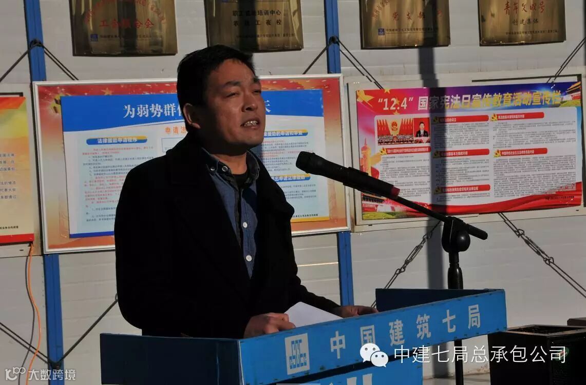 12月4日,是第二个国家宪法日,也是全国第15个法制宣传日,当天一大早,总承包公司总经济师付新建、法务合约部和党委工作部等一行人来到郑州泉舜项目部,开展了“送法制进项目”活动。郑州泉舜项目业主方、监理方领导、项目全体管理人员、各劳务班组等近100人参加了活动,人民网、《大河报》、《河南工人日报》等多家媒体对其进行了报道。