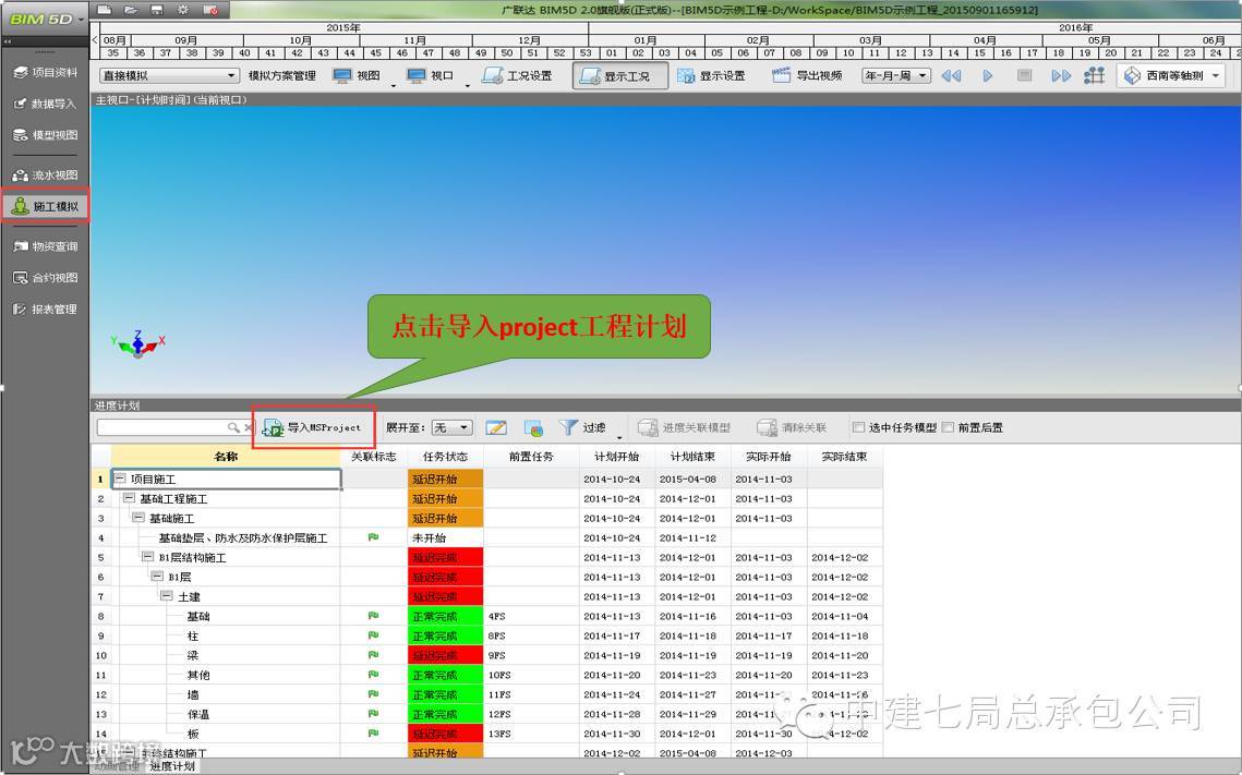 施工模拟——点击“导入MSproject”——选择工程文件进行导入
