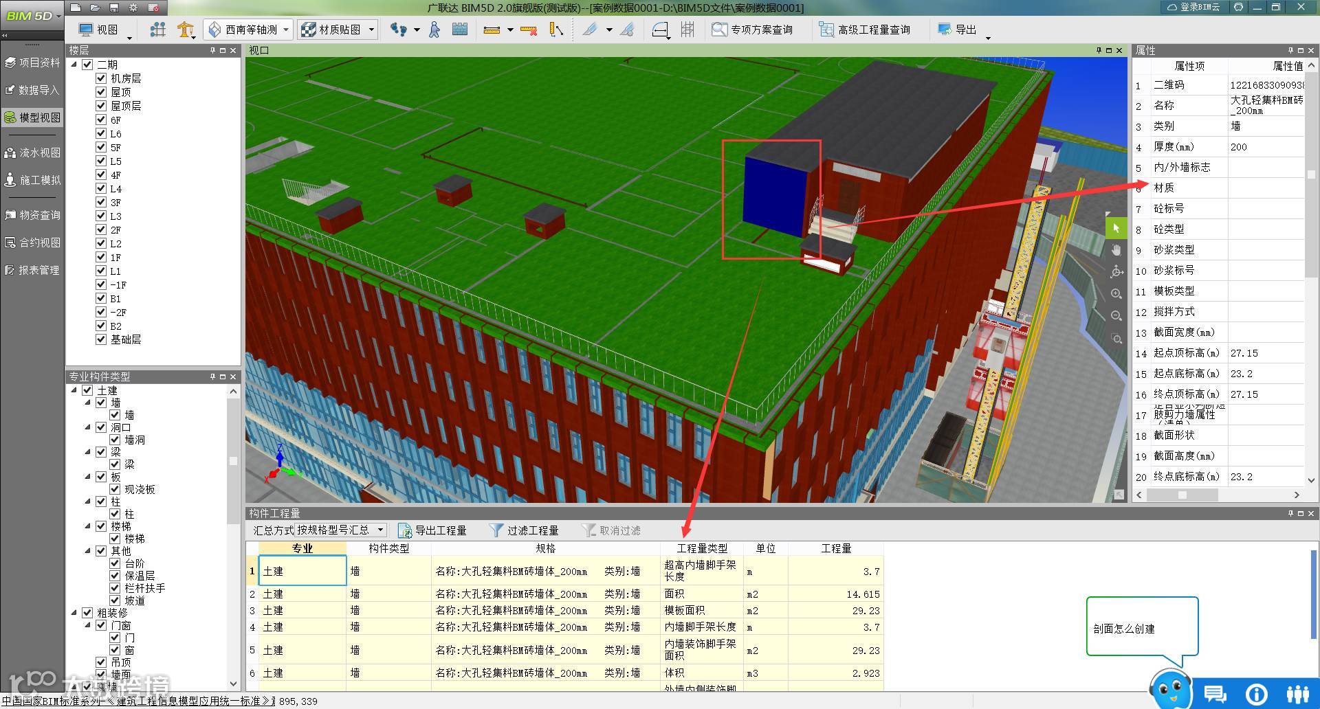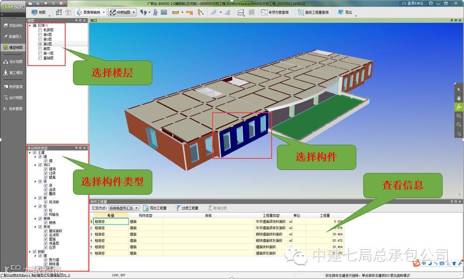 模型视图——查看楼层——选择查看构件——视图中选择查看信息