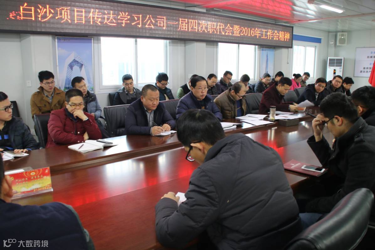 1月29日上午,总承包公司白沙安置区二期(永盛家园)项目部召开全体会议,传达学习公司一届四次职代会暨2016年工作会精神。白沙项目部C区书记吴文彦主持会议。