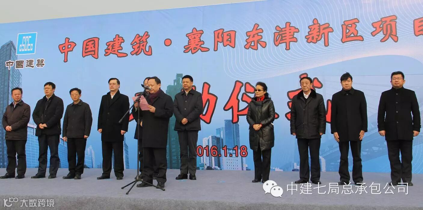 1月18日,中国建筑·襄阳东津新区项目启动仪式在襄阳市东津新区中建合作区现场隆重举行。中国建筑党组成员、副总裁马泽平,襄阳市委副书记、市长秦军,中建基础设施事业部执行总经理李加彬,七局董事长、党委书记陈颖,副总经理周爱明,总承包公司总经理陈胜文,党委副书记、纪委书记张新,副总经理王宇光、李向阳以及襄阳市委、市政府相关领导、中建基础设施事业部、中建襄阳公司有关领导和相关设计、参建单位负责人参加了活动。