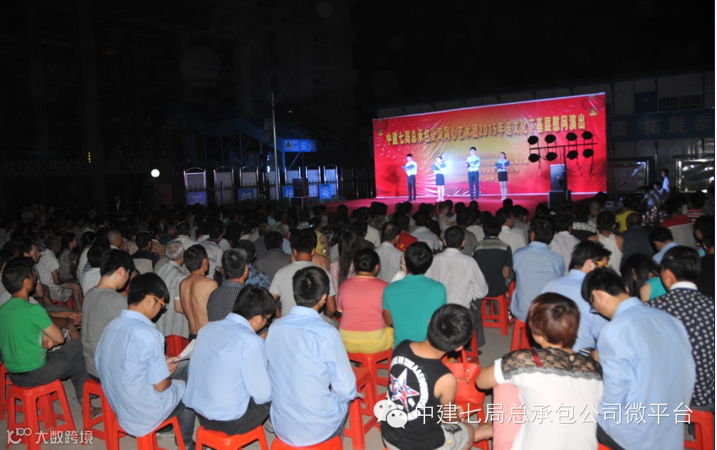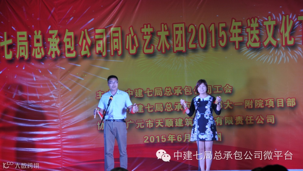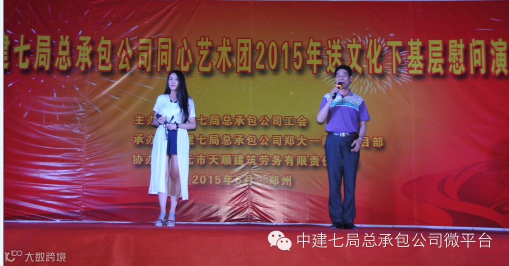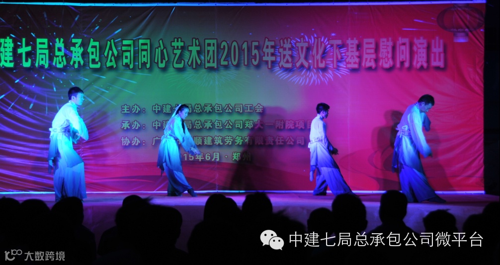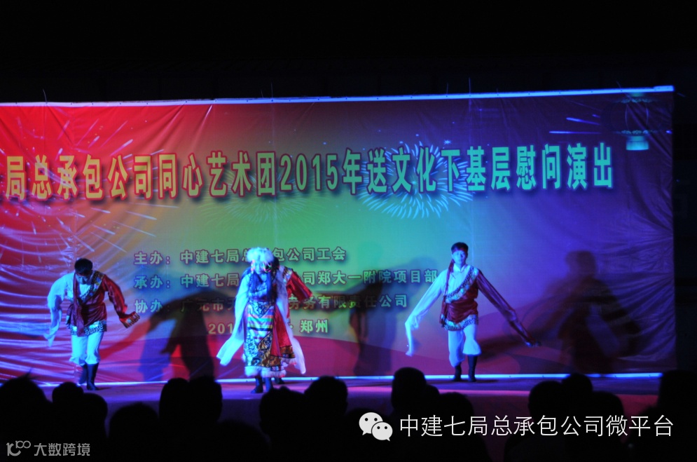 为了庆祝郑大一附院项目提前81天封顶,感谢一线员工和劳务工人的辛勤劳动,弘扬中建七局的铁军精神,鼓舞士气,6月5日晚8点,一场别开生面的晚会在郑大一附院项目上拉开帷幕,这是总承包公司同心艺术团2015年的首演现场,受到了一线员工的欢迎。局共赢艺术团艺术总监程刚,公司纪委书记、工会主席张新,公司副总经理王宇光,公司副总会计师、财务资金部经理陈辉、人力资源部副经理李文元及党群工作部等有关部门负责人观看了演出。