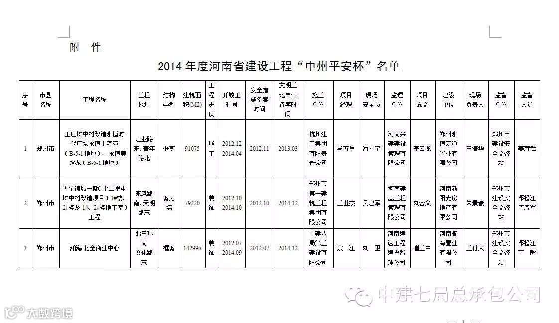 中建七局总承包公司近日,从河南省住房和城乡建设厅传出好消息,公司利海绿洲花园三期(26#-29#楼)工程荣获2014年度河南省建设工程“中州平安杯”。
