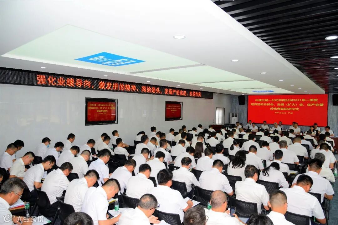 5月5日,华南公司2021年一季度经济活动分析会、安委(扩大)会、生产会暨劳动竞赛启动仪式在广州西安电子科技大学研究院项目召开。分公司总经理、党委书记向前,两级领导班子、总助级领导、部门正副职、项目经理代表等115人参会。