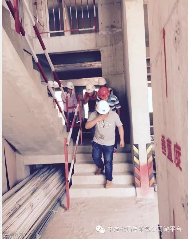 收到求救信号后,项目全体管理人员及劳务管理人员在项目安全总监李玉晓的带领下迅速组织现场人员进入紧急疏散状态。按照逃生演练方案中设定的逃生路线,所有现场劳务工人迅速而有序地从楼上灾区撤离到楼下空旷处,逃生时无踩踏、碰伤等情况。随后,李玉晓详细介绍了现场消防设施的布置情况,讲解灭火器及消防栓的使用方法和对伤员如何处理等,并进行了实际操作,取得了预期的效果。