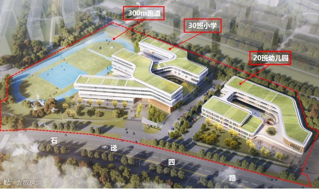 项目位于广州市黄埔区中新广州知识城南起步区国家知识产权局广东中心北侧,总建筑面积约2万平方米,主要包含1栋小学、1栋幼儿园、1个300米跑道及1层地下室(局部)。小学设置30个班,提供学位1350个;幼儿园设置20个班,提供学位580个。