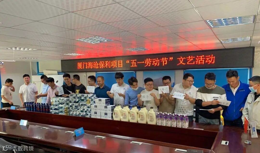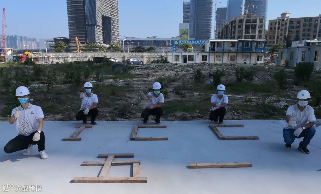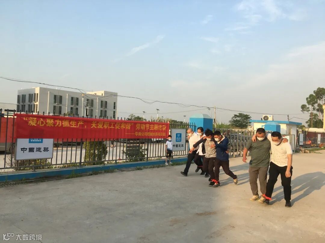 项目职工用木枋摆出“ICC”及“五一”造型