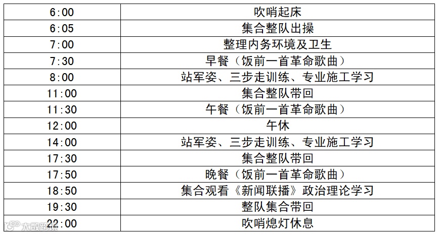 准军事化管理“课程表”