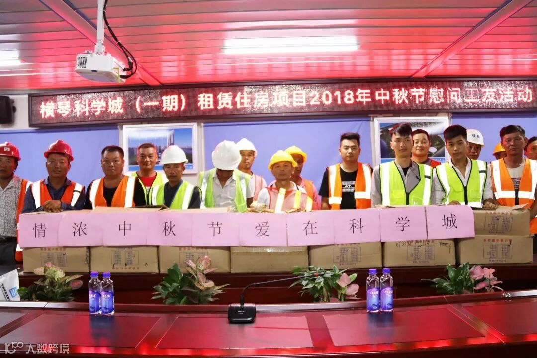 9月24日,中秋节当天,横琴科学城(一期)租赁住房项目开展慰问工友活动,向所有在节日里工作的劳动者致谢致敬,为1200余名工人送上月饼,并组织了游园赏石、户外徒步、烧烤团建活动。