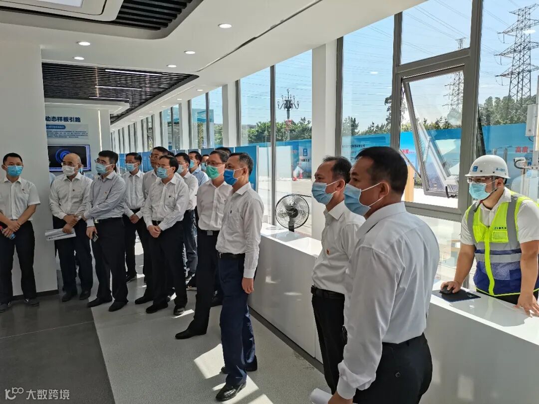 张硕辅一行在项目智慧工地大数据中心听取了项目简介、工程进度情况,详细了解了项目智慧工地的运行情况,他对项目建设情况、项目形象给予高度肯定,并表示智慧工地的做法值得学习推广。