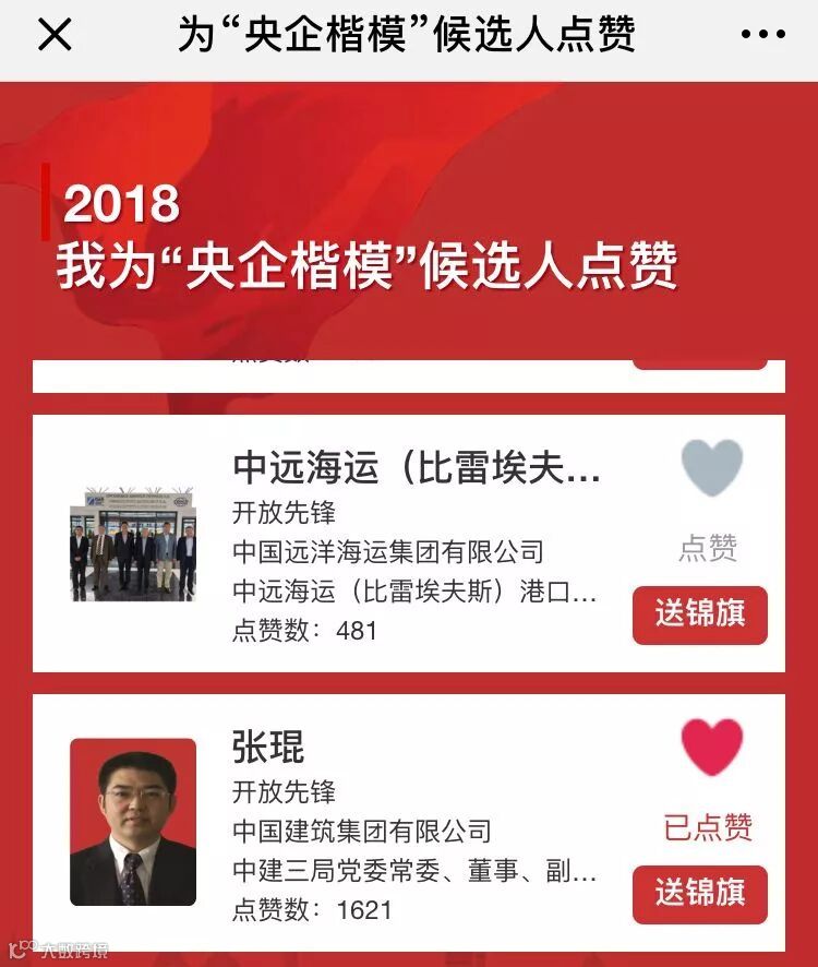 第四步:为张琨点赞、送锦旗。