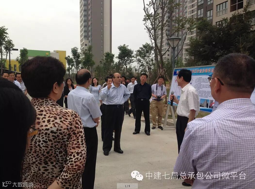 21日下午4点多,参观团先是来到了瑞锦小区南门,期间,经开区崔绍营书记详细介绍了项目的概况和目前的进展情况。崔绍营表示,这几年,中建七局凭借强烈的使命感和责任感,在经开区的建设过程中发挥了重要作用。由中建七局建设的安置房,不仅在质量和进度上值得肯定,而且还获得了政府、市民的满意。听到这里,参观团成员纷纷点头称赞,并详细了解了中建七局的发展概况。