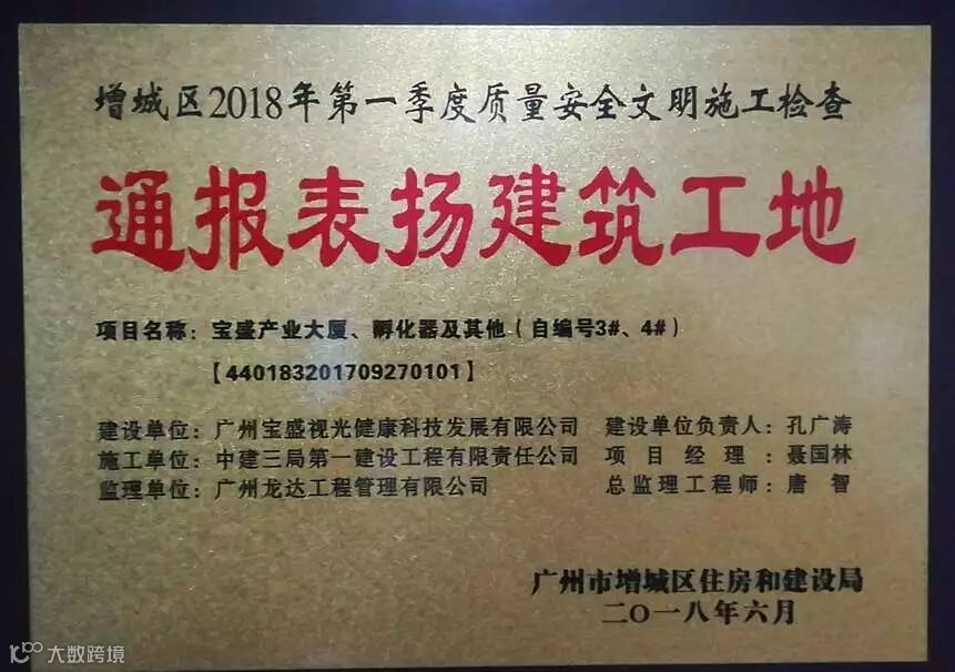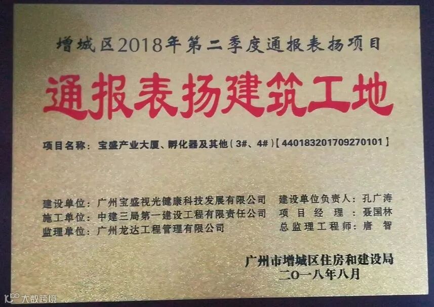 增城宝盛项目自开工建设以来,始终坚持“安全为重点,质量为中心,进度为抓手,创优为目标”的工作思路,在增城区住建局组织的2018年第一季度以及第二季度的综合评比检查中,连获“通报表扬建筑工地”称号,为华南公司在增城区域赢得了良好的市场信誉,为下一步实现增城地区区域式滚动发展奠定坚实基础。