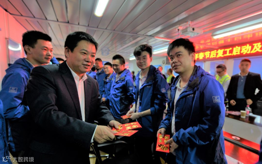 王飞为项目员工发放新年利是,对项目团队的辛勤付出表示慰问及感谢。