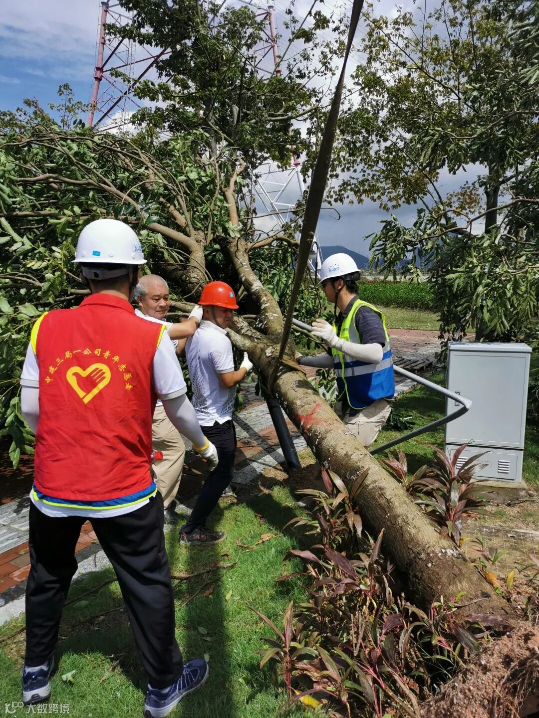 2020年8月19日,台风“海高斯”在珠海金湾登陆,登陆时中心附近最大风力12级。为协助横琴区尽快恢复正常生活秩序,中建三局一公司迅速组织岛上各项目的百名志愿者,开展长达10公里交通干道的疏通工作。横琴国际商务中心二期项目的彭祺胳膊脱皮严重,身上多处被虫蚁咬伤、肿胀,仍然坚持与志愿者们一起将一棵棵吹倒的树木扶正、加固支撑,直至恢复原状。连续3天,2500多棵大树在他们手中重新站立,琴海北路恢复洁净。