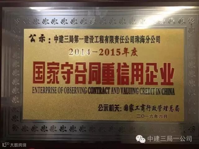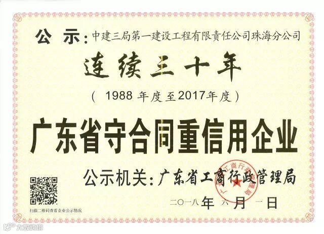 这是珠海公司连续30年获得“守合同重信用企业”荣誉。自1986年成立以来,珠海公司沐风栉雨、砥砺前行,32年历程中,始终坚持为社会提供最过硬的技术、最安全的施工、最优质的工程!
