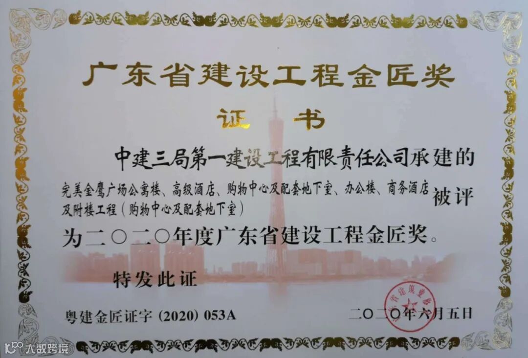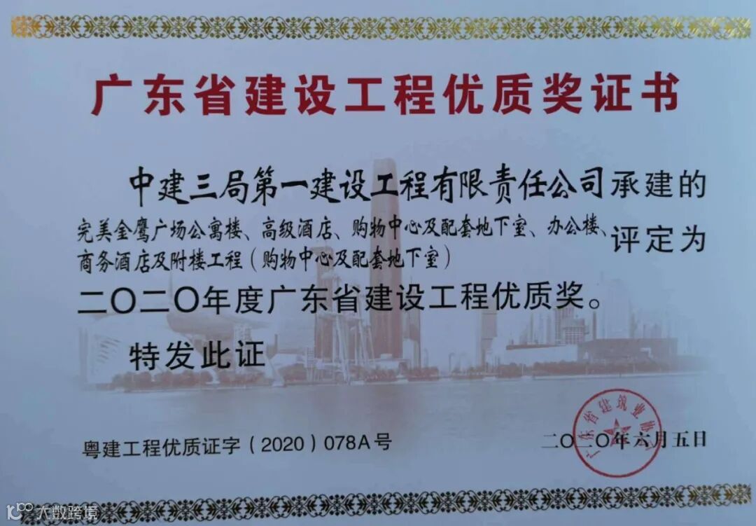 近日,中山完美金鹰广场项目相继荣获2020年广东省建设工程优质奖、2020年度广东省建设工程金匠奖。
