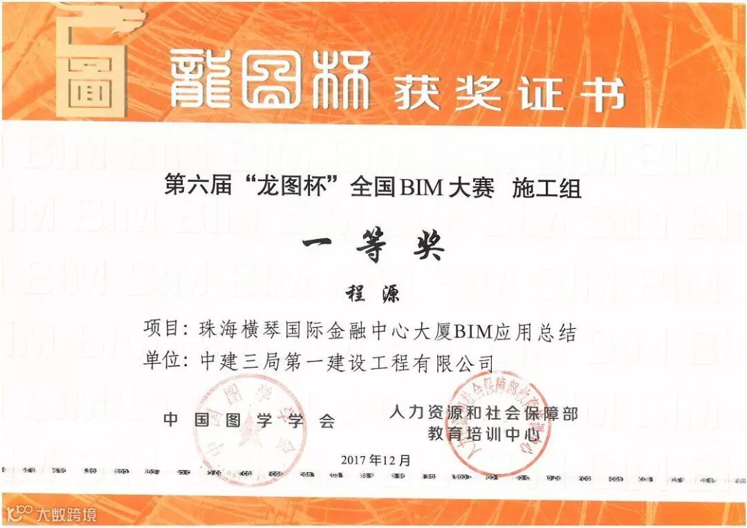 《“龙图杯”全国BIM大赛一等奖》
