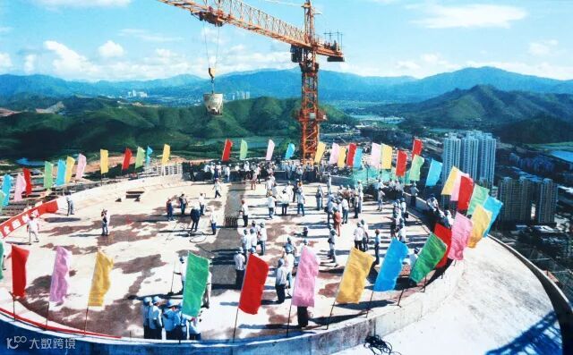 1995年6月9日,最后一根钢梁安装就位。嘉宾云集、鲜花锦簇、彩球腾空、鼓乐齐鸣,相关领导和社会名流共计700余人参加了盛大的平顶仪式。