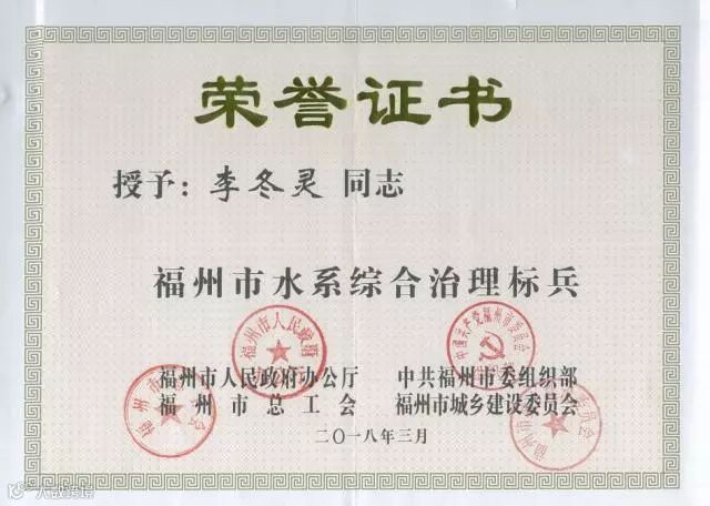 近日,福州市人民政府办公厅发文,对在2017年福州市水系综合治理中组织开展黑臭水体整治“百日冲刺,比速度、比质量、比安全,创一流工程”的劳动大竞赛过程中,涌现出的一批先进个人,进行了表彰。华南公司副总经理、福州公司经理李冬灵荣获“福州市水系综合治理标兵”称号,福州鼓台水务项目管理人员詹金库、刘传霞、胡凯、陈俊杰、王梦力五人荣获“福州市水系综合治理先进个人”称号。
