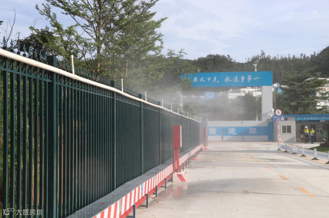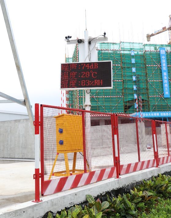 在横琴新区高级人才公寓(二期)项目工地东南角,专门设置了扬尘监测监控点,实时监测扬尘含量。监测数据上传物联网平台,形成扬尘排放时间曲线图,当PM 2.5或PM 10的浓度达到警戒值后有报警提示,喷淋系统自动启动,当浓度降到警戒值以下后自动关闭,同时,可手动设置启动及关闭。
