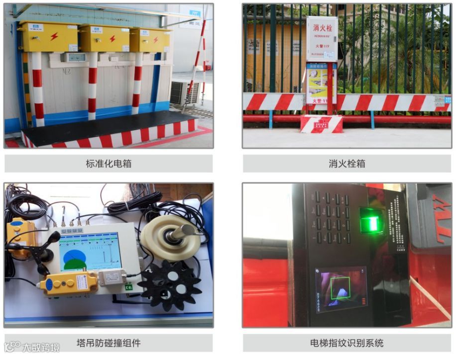 塔吊采用防碰撞及吊钩可视化系统避免发生碰撞事件。通过钢丝绳标色,区分检查周期。