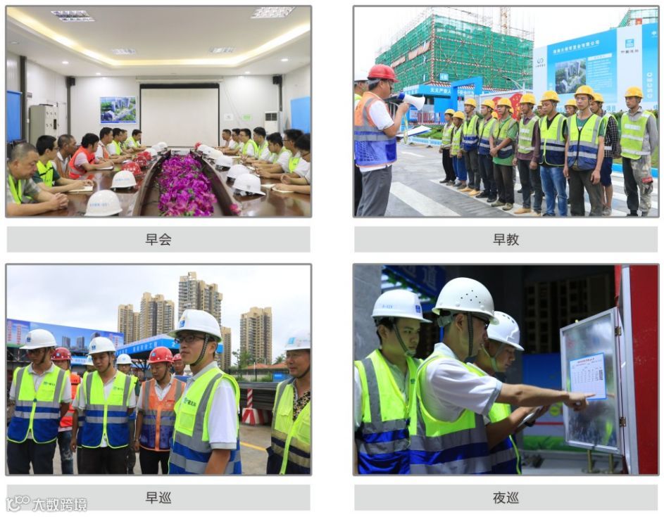 每天早上召开早会,项目各部门负责人及各分包负责人参会,布置当天安全工作要点,进行各单位工作协调。