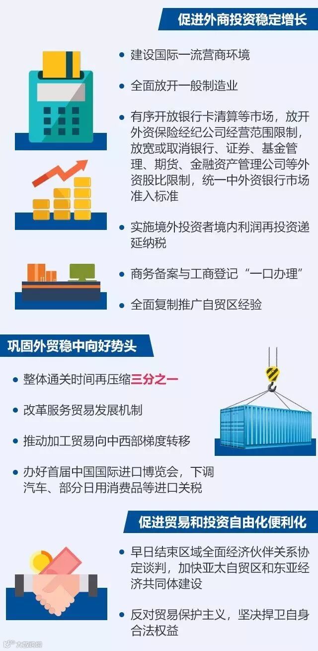 开放:放宽或取消银行、证券、基金管理、期货、金融资产管理公司等外资股比限制。探索建设自由贸易港。