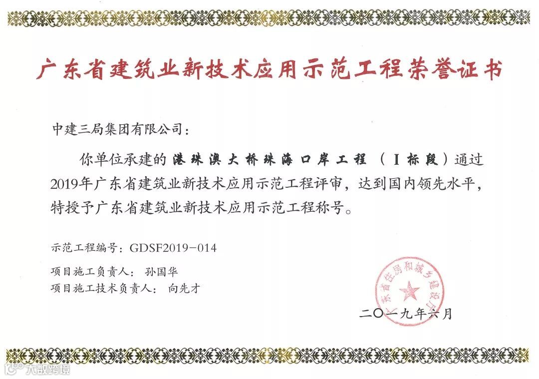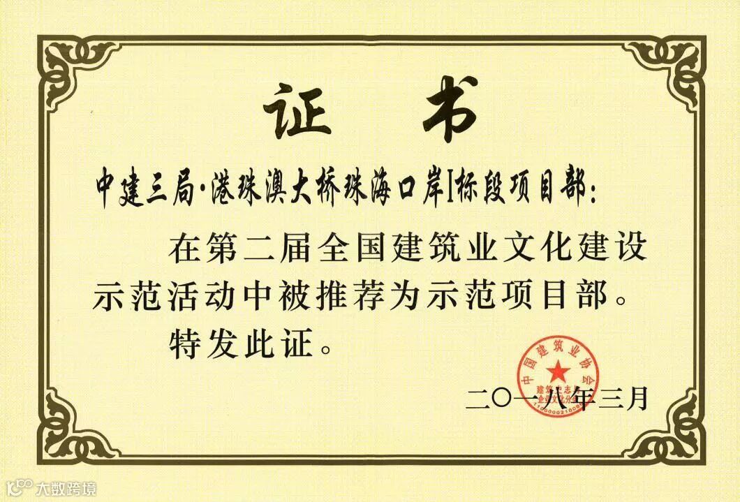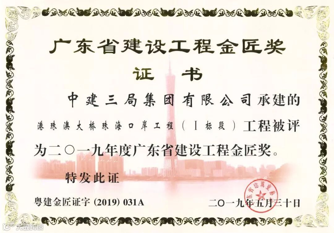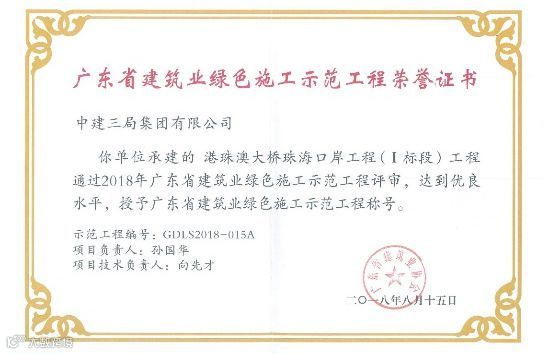 很荣幸能参加国家工程港珠澳大桥珠海口岸的建设,该项目获得中国建筑行业工程质量的最高荣誉奖——鲁班奖。作为参建口岸项目的一员,我感慨万分,能把一切平凡的事做好既不平凡,这是对我过去努力的认可,更是对将来的鞭策,在以后的工作中我将不忘初心,砥砺前行,以更高的要求和标准助力企业高质量的发展。