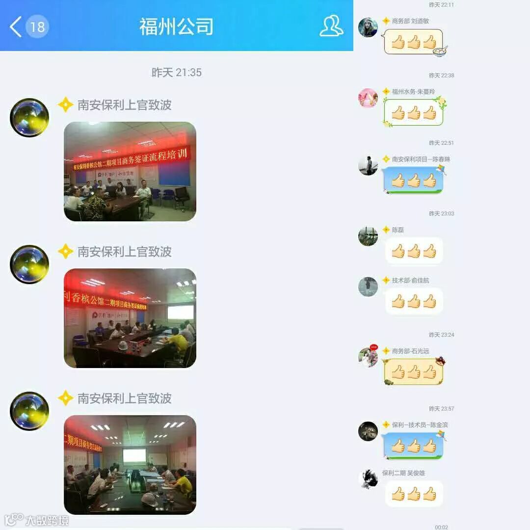 这次会议多亏了和我共事的马顺丽才得以及时开展。对我而言,那些小小的赞,尤其是汇集了那么多人的赞,真的是对我们商务工作的巨大鼓励。它不仅检验我们是否完成了上级交代的任务,也代表着大家对我们工作的认可,更考验着我们以及其他被点过赞的人的自知之明——是否承担的起这些沉甸甸的赞。