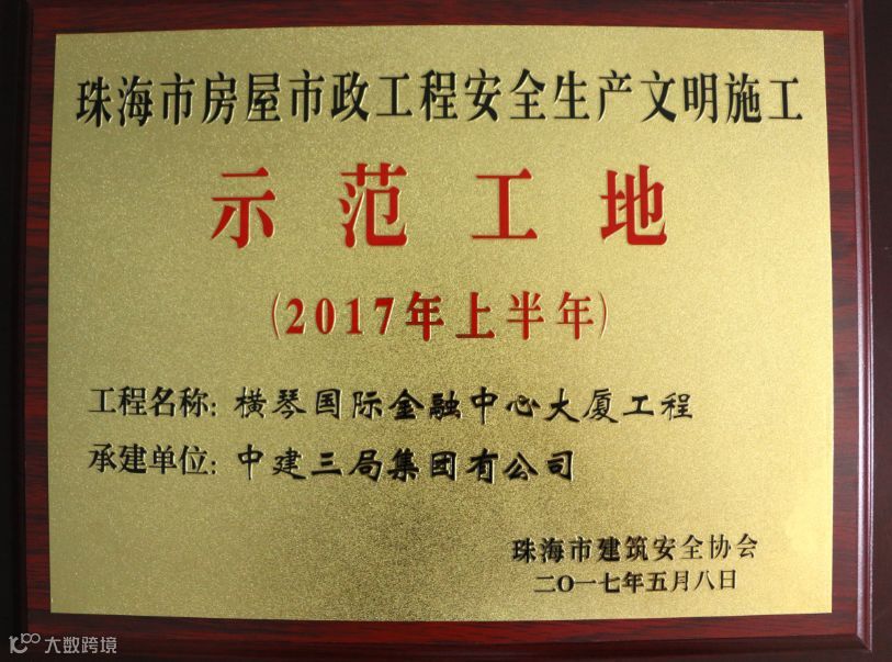 横琴国际金融中心大厦项目于2017年5月获得珠海市房屋市政工程安全生产文明施工示范工地,本次获得省示范工程是对项目安全管理工作的进一步肯定,同时也是一种勉励,项目将以此为契机向“国家AAA级安全文明标准化工地”目标冲刺。