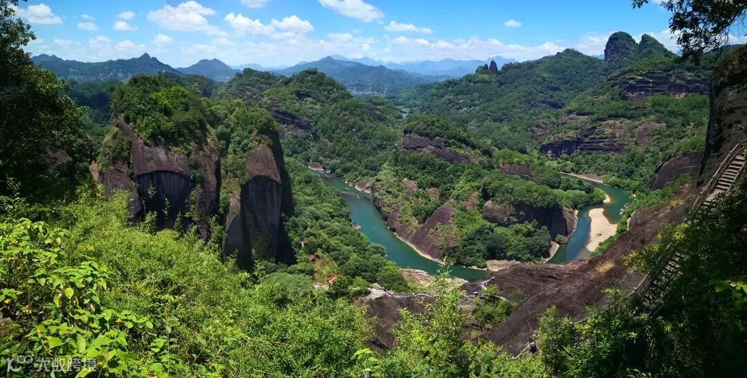 首日清晨,我们坐上了前往武夷山的动车,窗前初夏的阳光已褪去了温柔和妩媚,多了几分热烈和刚强。阳光吻在脸上,再不像少女的初吻那般轻,那般甜蜜,有点火辣辣的。欣赏完一路沿途美景,到达武夷山景区已是午时,随意解决下肚子问题。