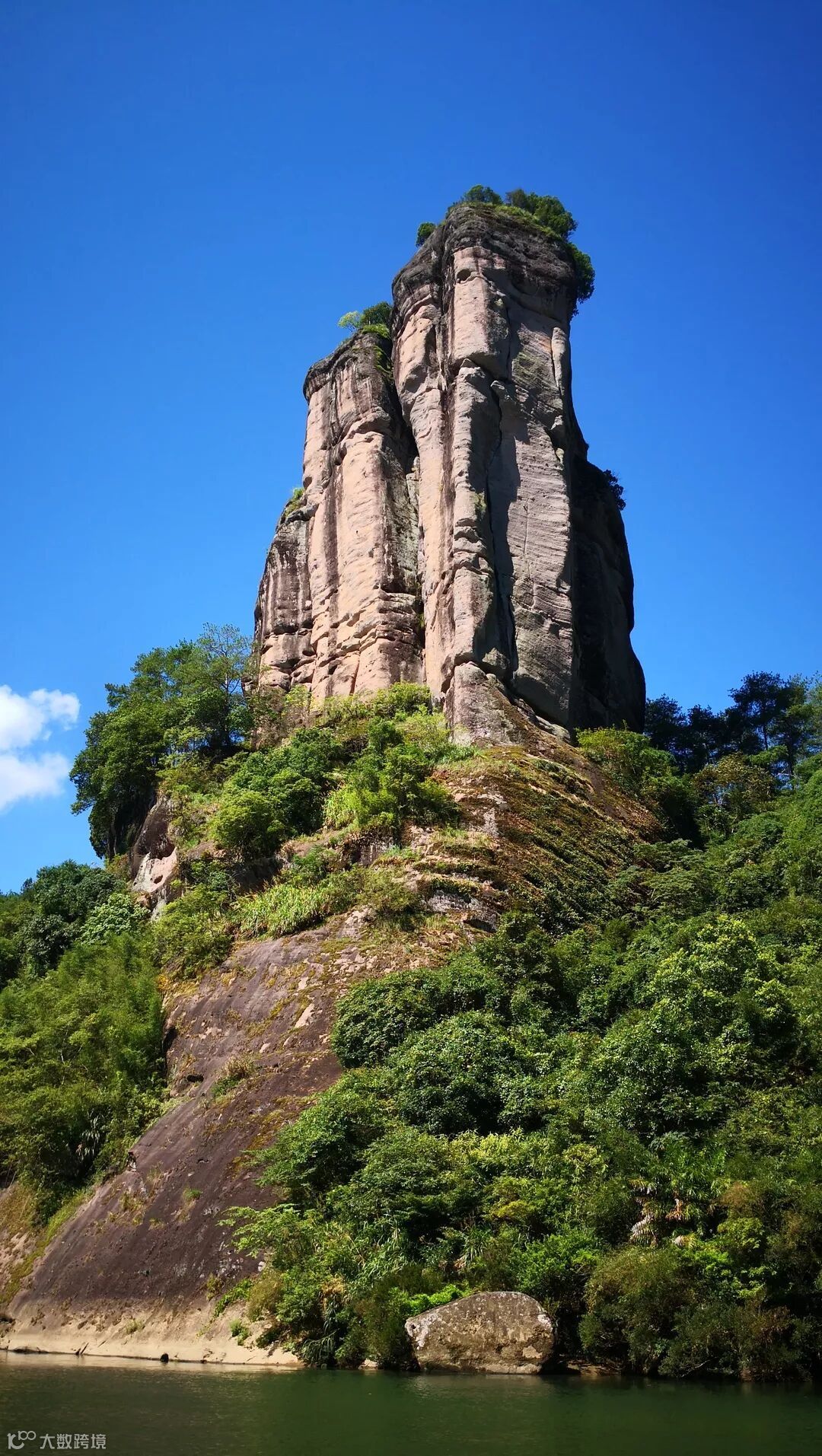 坐在筏上,时而风平浪静,轻舟荡漾;时而水流急湍,迎波击浪。有起有伏,有惊有险,有喜有乐,妙哉,妙哉。一条幽深清碧的九曲溪盘绕于丹崖群峰之间,两岸36奇峰、99专岩皆昂首向东,如万马奔腾,气势雄伟,千姿百态。