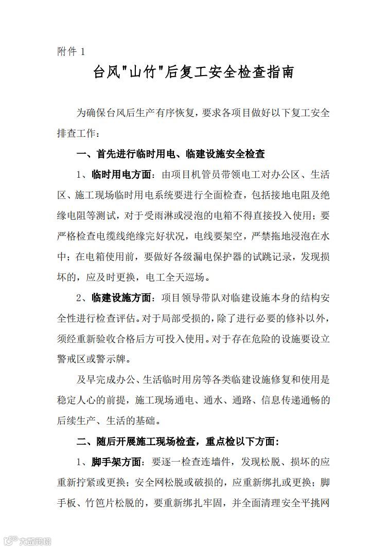 华南公司下发《华南公司项目台风"山竹"后复工安全检查及商务理赔工作指南》通知