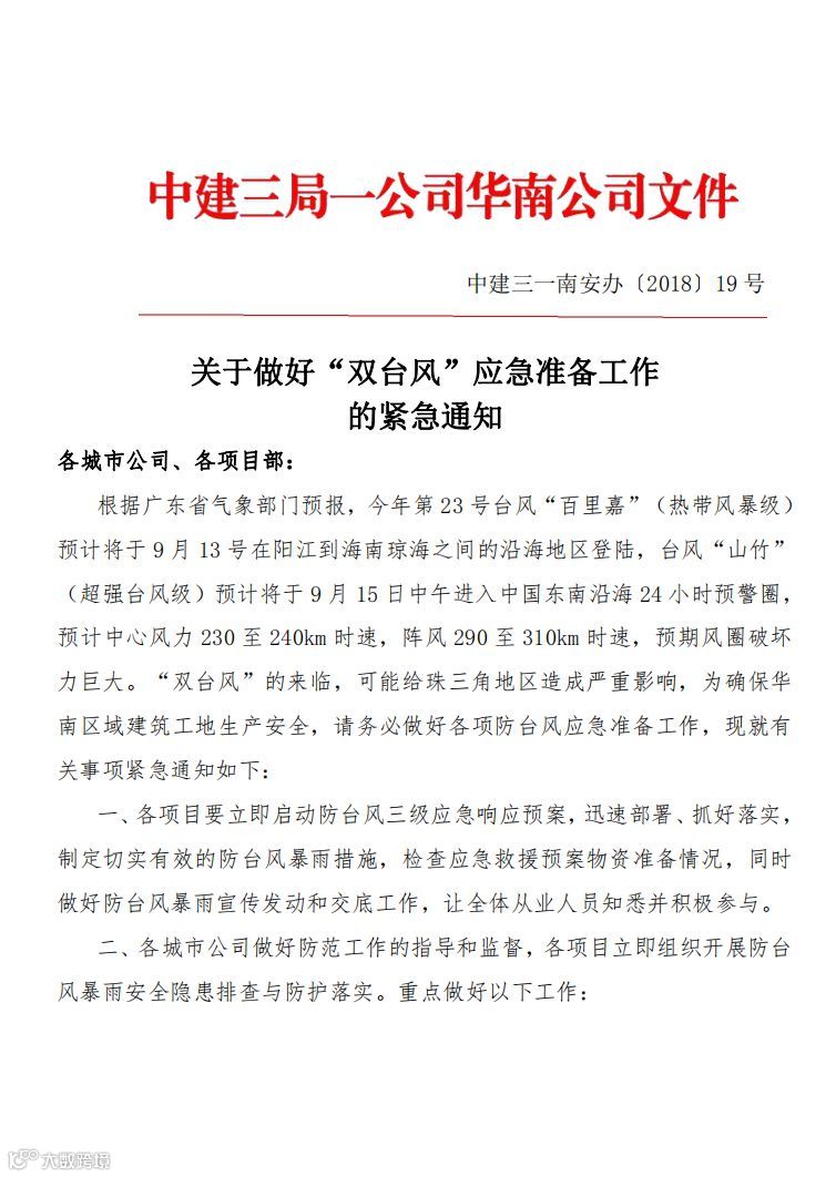 华南公司下发《关于做好“双台风”应急准备工作的紧急通知》