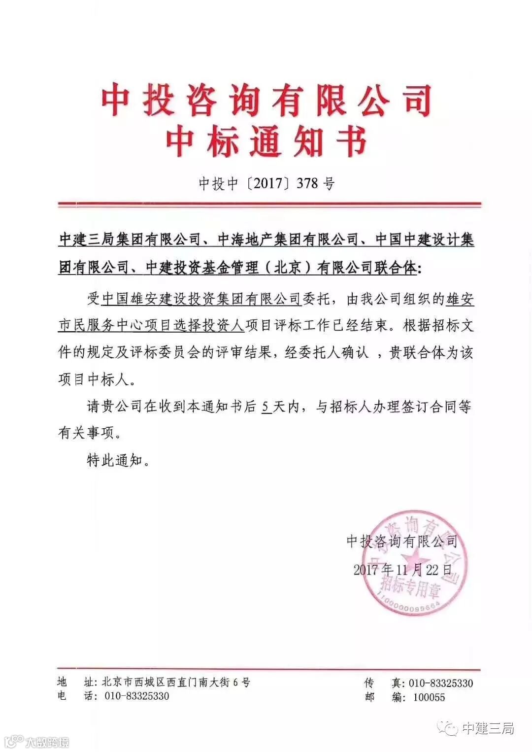 由局牵头中国建筑旗下中海地产、中建设计、中建基金组成的联合体,以联合投资人的身份中标雄安市民服务中心项目。该项目是雄安新区面向全国乃至世界的窗口,带动局顺利进驻雄安新区,抢占发展先机。