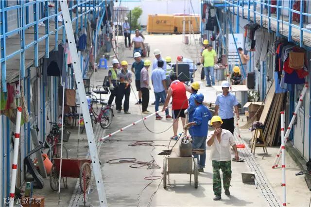 很快,在8月27日台风“帕卡”来临之前,项目将所有受损办公、住宿区域清理完毕,现场安全文明施工逐步恢复。灾后,珠海市面上板房短缺,项目千方百计协调,终于在8月28日,板房材料组件陆续到位,项目立即在雨中开始重建,到9月4日,5000平米的崭新板房就已经具备办公入住条件。