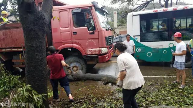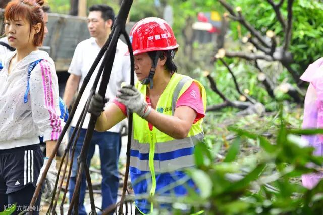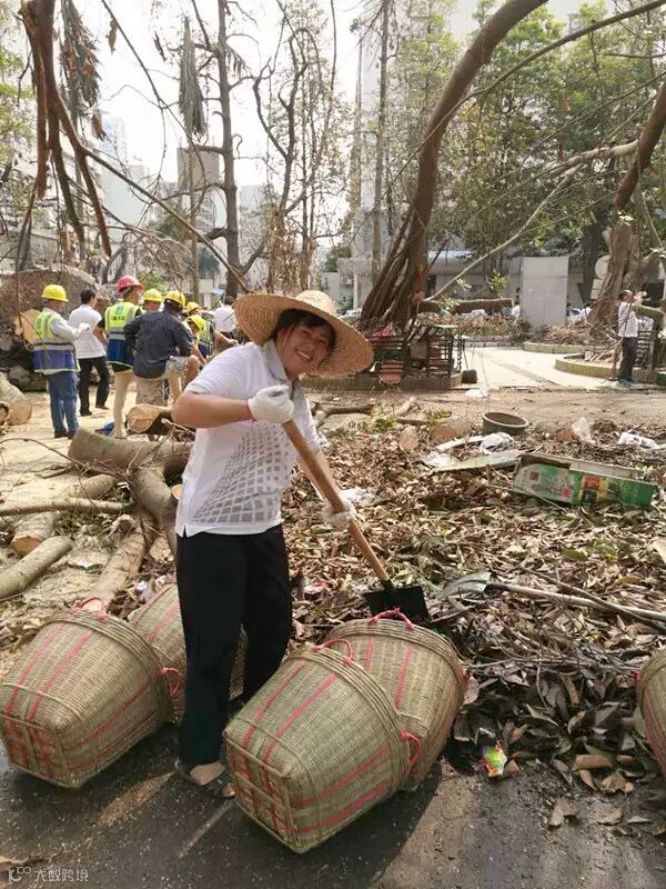 在白莲路清障现场,20多名珠海公司的女职工们用她们柔弱的肩膀、纤细的双手努力清理着倒伏的大树、遍地的垃圾,让满目疮痍的城市早日恢复她昔日的容颜。