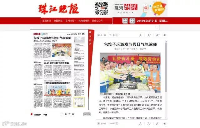 “热气腾腾的饺子,热火朝天的施工现场,这个节假日很特别。”4月29日下午,“礼赞奋斗美,致敬劳动者”主题活动在前山河畔的珠海中海环宇城二期项目建设工地举行。工人们利用工余时间包饺子,玩游戏,庆祝五一劳动节。(通讯员 张静)