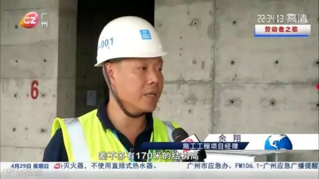 “在五一劳动节来临之际,项目团队及一线农民工一如既往的坚守在自己的岗位上,朝着目标节节推进,争取早日完成各项生产任务,愿为广州建设再力新功。”4月29日,唯品会项目经理余翔接受广州电视台新闻频道的专访。