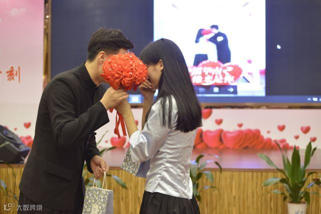 最后,在舒缓温馨的轻音乐中,全体女嘉宾来到会场中央围成一圈,男嘉宾们手持鲜红的玫瑰,小心翼翼走上心仪女嘉宾跟前,大胆告白:“今天你好美,我能牵你走吗?”“晚上我想请你吃饭,可以吗?”、“我想为你唱首歌,你想听吗?”······