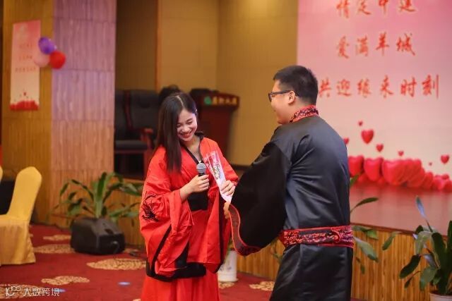 飞舞的绣球,巧妙地将男女嘉宾联系在一起,沉浸在“二人世界”之中,嘉宾们“把话说开,把心打开”,就自身关注的问题寻找答案;随后,嘉宾们换上传统汉服及民国服装,重演了历史中著名情侣的经典形象,留下“最美瞬间”。通过播放展示,评选出“最佳pose”奖、“最佳亲密”奖、最具夫妻相”奖,并发放精美礼品;在现场,团队式的小游戏“平面五子棋”、“瞎子背瘸子”更是将活动氛围推向高潮,男女嘉宾同心同行,互帮互助,在亲密接触的同时,也加深了彼此之间的协作意识,两人感情不断升温。